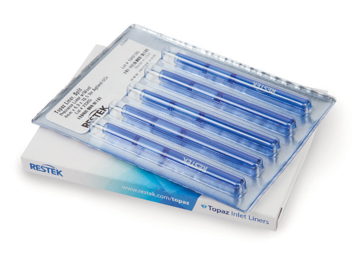 • Use wool with confidence—new quartz wool is deactivated after packing, preventing the loss of sensitive analytes.Topaz inlet liners from Restek are extensively tested to assure consistent product quality. The color and label have been shown not to interfere with analyses or contribute to background. Choose blue—the best liner for sensitive applications.