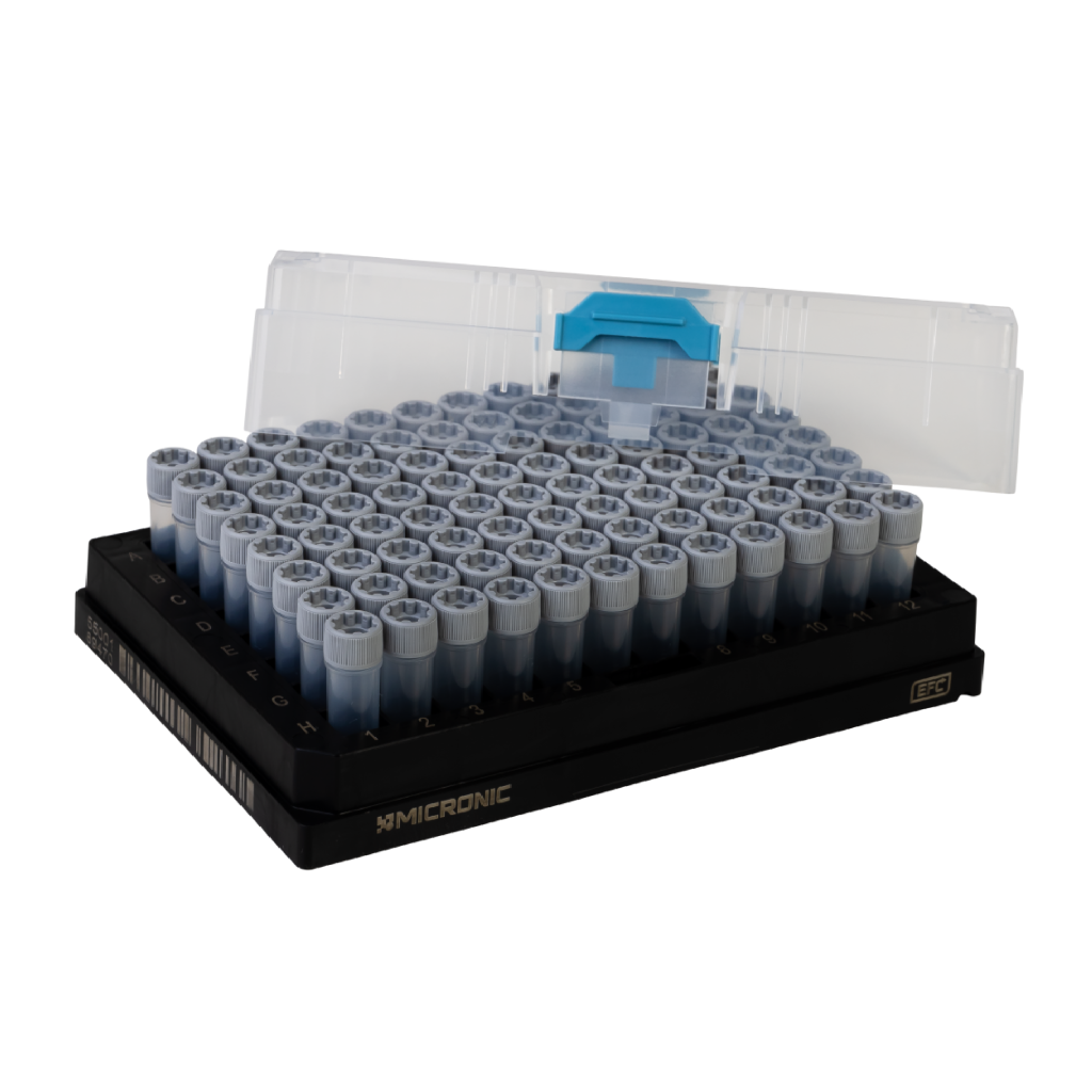 Made of 99% renewed material, the Micronic Eco-Friendly Choice Rack RM is an important advancement for the life sciences market. The Eco Rack 96-2 holds 96 individual 0.75ml tubes with internal or external thread. Based on the global recognized ANSI/SLAS standards for storage racks, the sample storage Micronic EFC 96-2 Rack RM, features a laser-etched 1D Barcode and a Human readable code on the side for better visual identification.