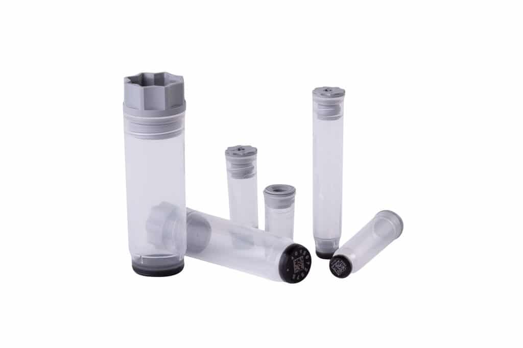 The traceable 1.10ml storage vials from Micronic work equally well with either screw caps or push caps. The tubes have a net working volume of 0.80ml when used with screw cap or 0.90ml when used with push cap (working volume at +21°C). The 1.10ml tubes are standard available in the Roborack-96 or Micronic 96-3 Rack. The 1D barcoded racks are based on the ANSI/SLAS standards for storage racks and are produced in a certified class 7 clean room.
