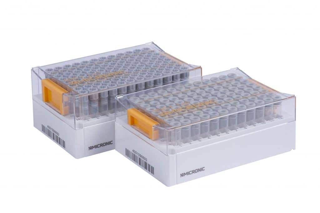 1.40ml 2D Data-Matrix coded Screw Cap tubes with Internal Thread U-bottom precapped with Grey Low Profile Screw Cap in Micronic 96-4 Rack with low cover (Barcoded A1-H1 side), 4 x 10 Racks