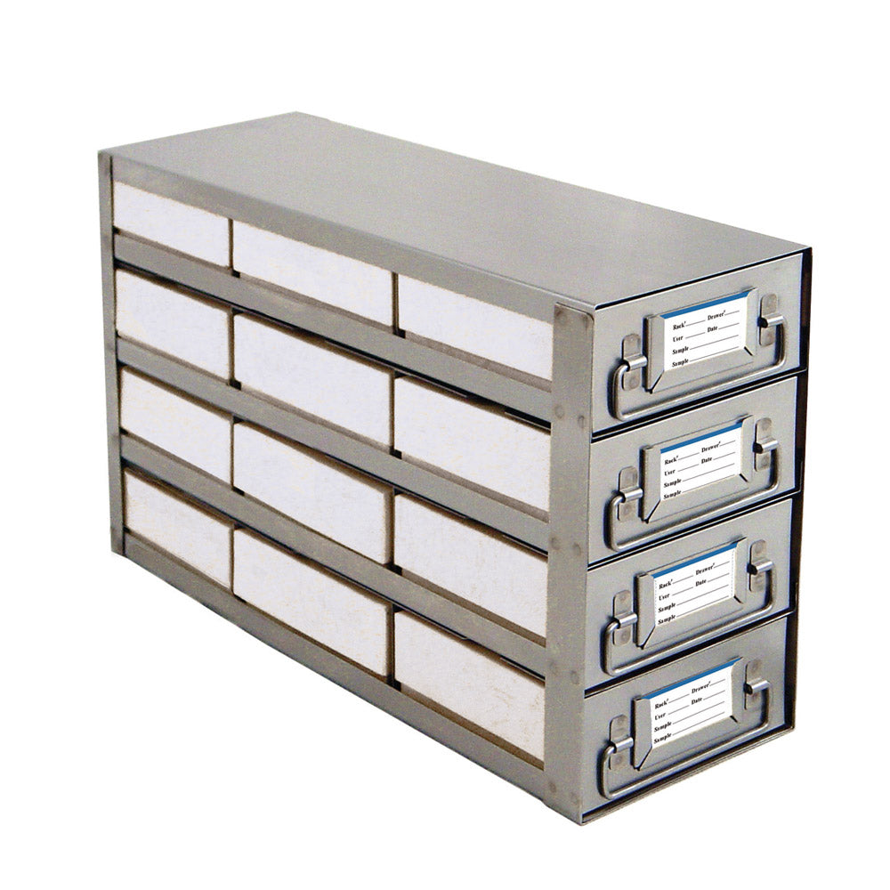 12-Place (3 Long x 4 High) Upright Freezer Sliding Rack For 2 In H Boxes, 16 1/2 In L x 5 1/2 In W x 9 7/16 In H, Stainless Steel