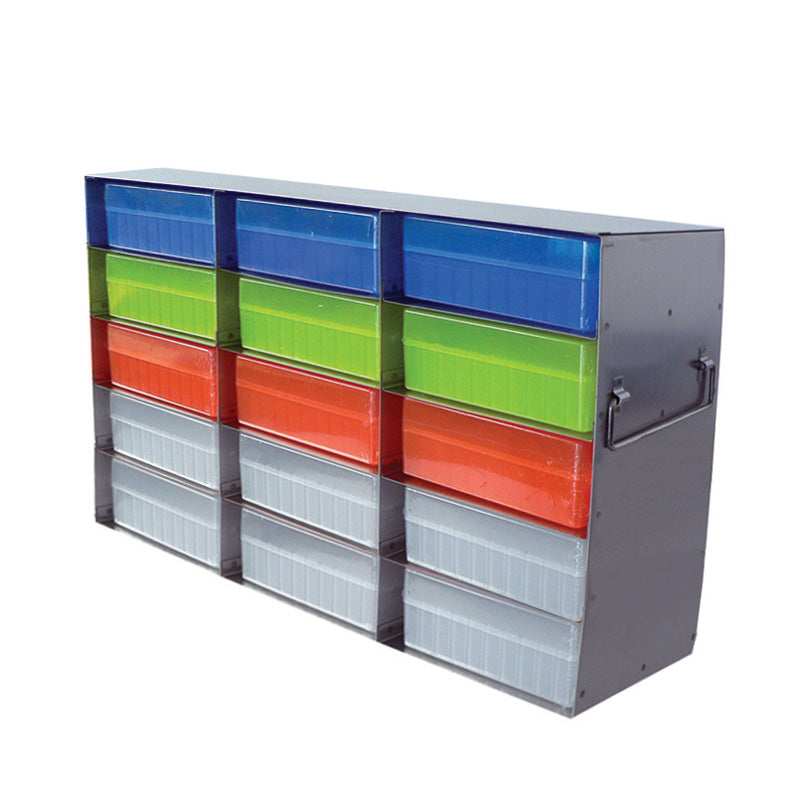 15-Place (3 Long x 5 High) Upright Freezer Rack For 100-Place Hinged Boxes, 18 3/4 In L x 5 7/8 In W x 11 9/16 In H, Stainless Steel
