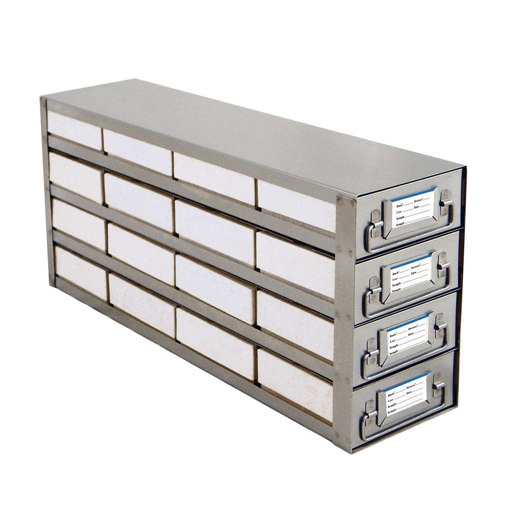 16-Place (4 Long x 4 High) Upright Freezer Sliding Rack For 2 In H Boxes, 22 In L x 5 1/2 In W x 9 7/16 In H, Stainless Steel
