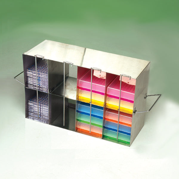 8-Place (4 Long x 2 High) Upright Freezer Rack For Multiple Well Plates, 14 3/4 In L x 5 1/2 In W x 9 1/4 In H, Stainless Steel