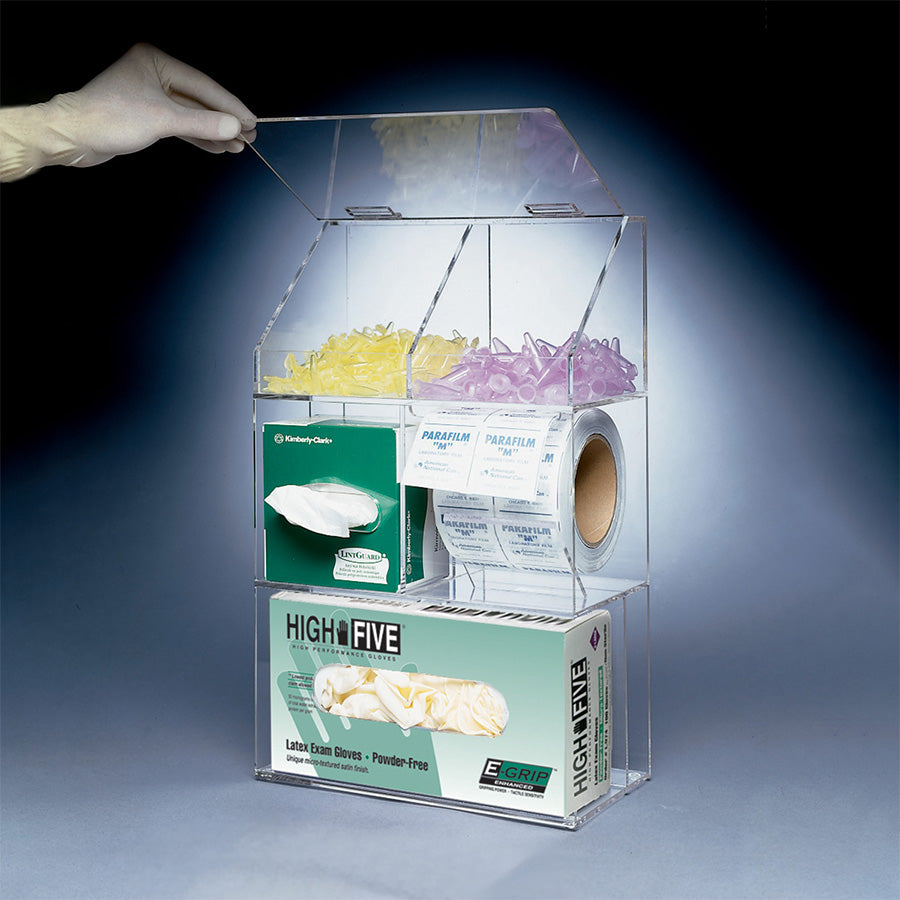 Acrylic Bench Top Organizer and Dispenser. Measures 10.4 W x 5.4 D x 17.3 H (265 mm W x 137 mm D x 440 mm H).