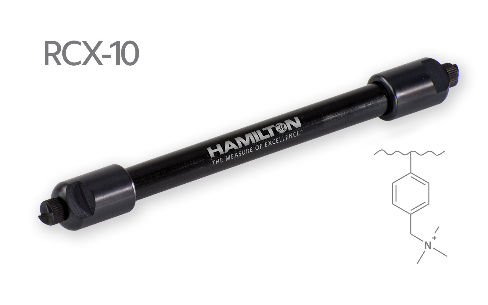 Hamilton RCX-10 polymeric anion exchange packing for isocratic or gradient separation of carbohydrates.
