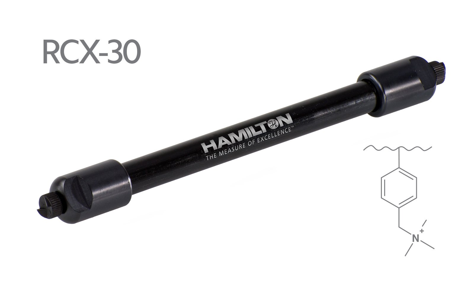 Hamilton RCX-30 polymeric anion exchange packing for isocratic or gradient separation of complex carbohydrates.