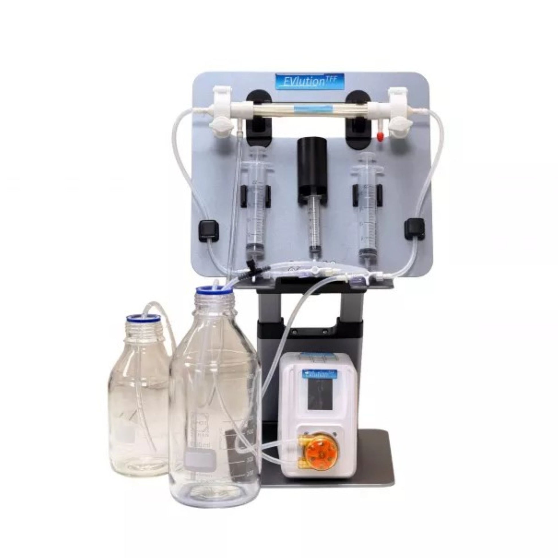 EVlution™ is a compact TFF platform designed for efficient size-dependent concentration and purification of EVs and other molecules. TFF provides an effective method of size-based separation of EVs from other biomolecules, whilst minimizing membrane fouling. The characteristics of TFF design makes it an excellent choice for workflows at the lab scale. The adaptable design of EVlution™ supports a wide range of hollow fiber filter configurations, making it a flexible solution for diverse laboratory-scale applications. With an intuitive interface and streamlined operation, EVlution™ simplifies complex filtration processes while delivering reliable performance.