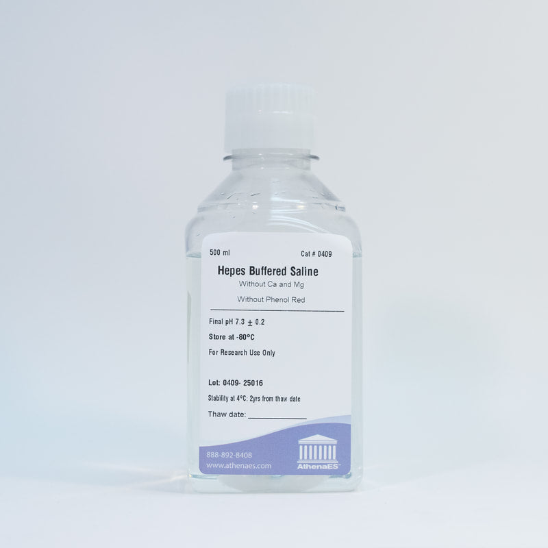 Hepes Buffered Saline is available with or without Phenol Red. It is an isotonic saline buffered with Hepes, for use in rinsing cell monolayers prior to cell dissociation using PETTM or washing harvested cells.