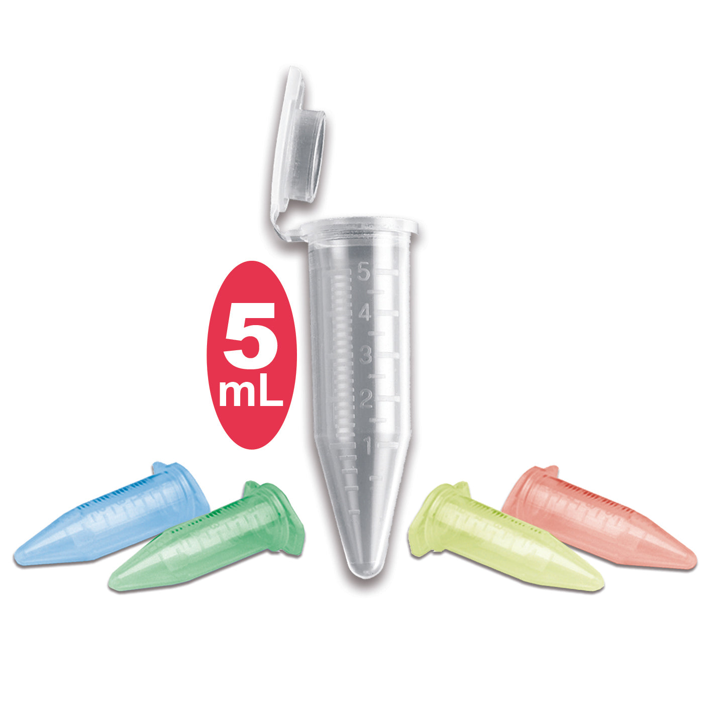 5mL MacroTubes® scale up the conveniences of standard 1.5mL tubes for larger volumes. These polypropylene tubes come with an attached cap that provides a tight, leak-proof seal, and can also be opened (or closed) with one hand. The cap is designed to provide a secure seal from -86°C to +80°C.