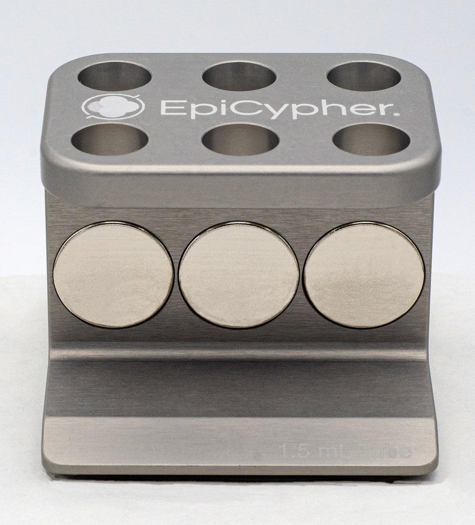 Magnetic Separation Rack for use with up to six 1.5 mL microfuge tubes for separation of paramagnetic beads in a variety of cell-based or molecular biology applications.