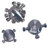 Manifold, 1/16", 6 inlets 0.25mm bore, 1 outlet 0.75mm bore, PEEK