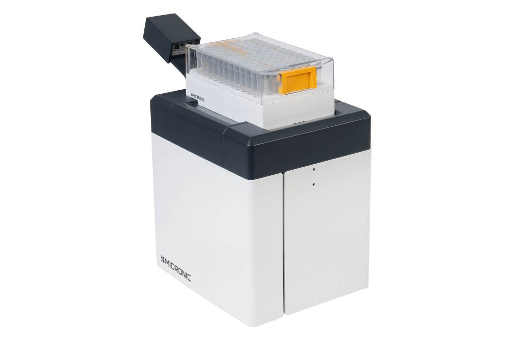 The high speed Micronic Rack Reader DR900 reads whole racks filled with 2D Data-Matrix coded tubes. The DR900 is a camera-based reader which reads and decodes the tubes in just 3 seconds. With the optional added 1D Side Barcode Reader, the 1D Rack Barcode can be read simultaneously in just 1 second. The Rack Reader DR900 works with the easy to install Micronic Code Reader Software which gives reliable code readings and can be smoothly integrated into any laboratory sample database.