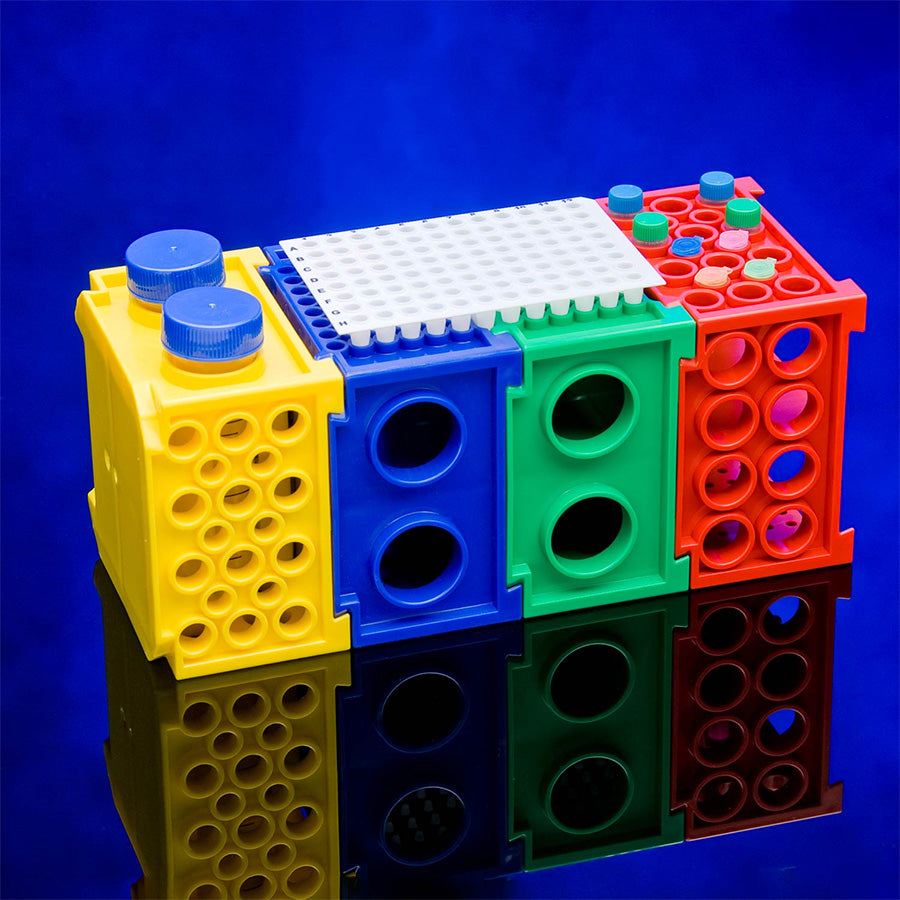 Modular Workstation Tube Rack with 4 Interlocking Component Racks, Mixed Colors, Polypropylene