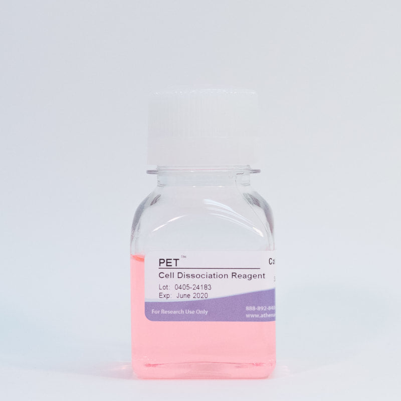​PET™ is a superior cell dissociation reagent specially formulated for use under “Cold Trypsin” conditions. The unique blend of polyvinylpyrrolidone, EGTA, and trypsin in a HBS base allows the trypsin to retain enzymatic activity under cool temperatures, unlike standard trypsin which requires a temperature of 37°C. When used to detach monolayer cultures of epithelial cells from the growth substratum, this reagent yields more viable cells from monolayers grown in serum-free medium than traditional trypsin formulas.