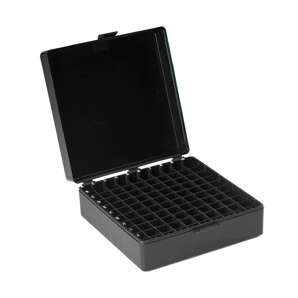 Lids have a durable, rolling hinge that withstands freezer storage and a snap-clasp that keeps boxes closed. Bold alpha-numeric markings provide easy sample identification. Measures 5 9/16" L x 6" D x 2 3/16" H.