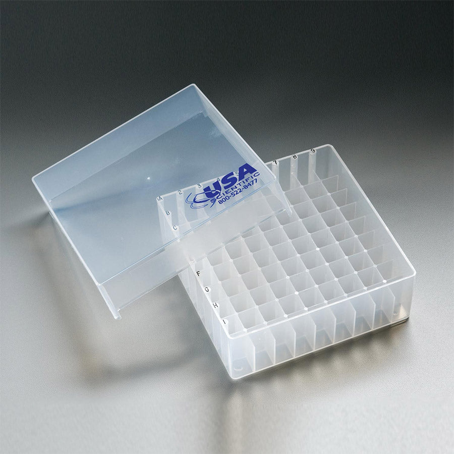 Polypropylene 81-Place Box with Natural Bottom and Clear Lid, 5 1/8 In L x 5 1/8 In W x 1 7/8 In H, 5/Pack