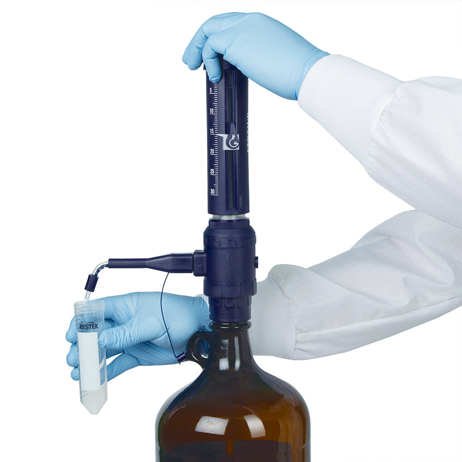 • Adjustment knob offers 56 output volume settings from 2.5 mL to 30 mL per stroke (0.5 mL increments)—ideal for QuEChERS methods!