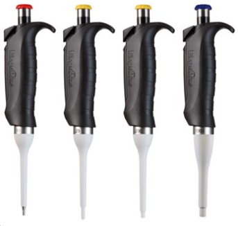 Set of 4 ErgoOne® Single Channel Pipettes. 10, 20, 200, and 1000 µL
