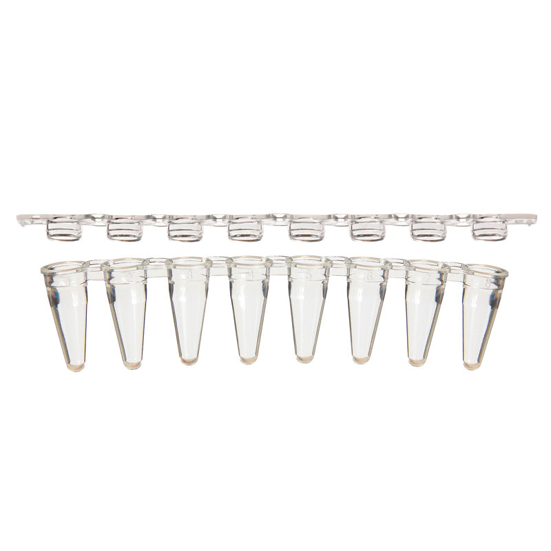 TempAssure PCR Flex-Free 8-Tube Strips, 0.1 mL, Natural PP, with Optically clear 8-Cap Strips, 125 Strips of 8 (1000 Tubes/Cap) per Pack