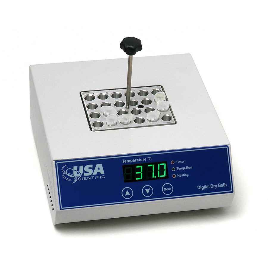 • Thermal-Lok dry heat bath provides precise and stable temperature control from 5°C above ambient to 150°C. Includes a large digital display and convenient 1-999 minute timer. Accuracy ±0.2°C; increments 0.1°C.