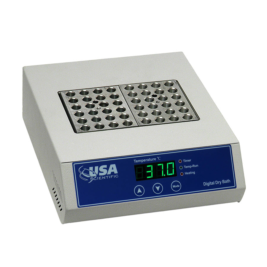 • Thermal-Lok dry heat bath provides precise and stable temperature control from 5°C above ambient to 150°C. Includes a large digital display and convenient 1-999 minute timer. Accuracy ±0.2°C; increments 0.1°C.