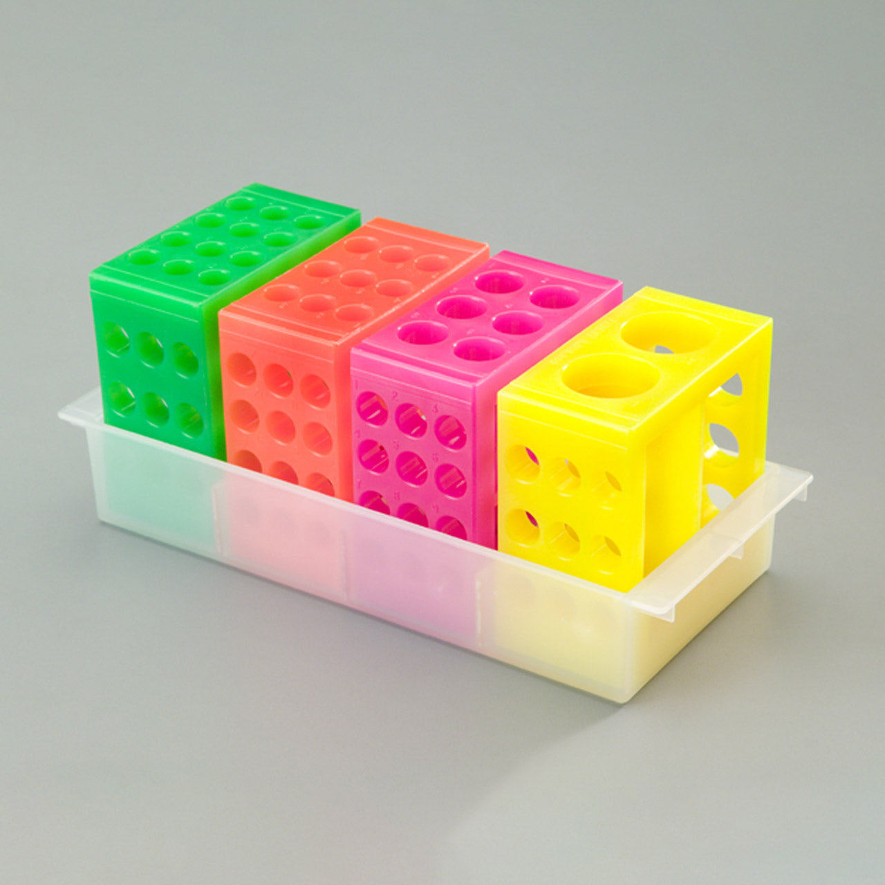 Totally Tubular System, Mixed Neon Colors, One Set of 4 Tube Blocks and One Tray Per Pack