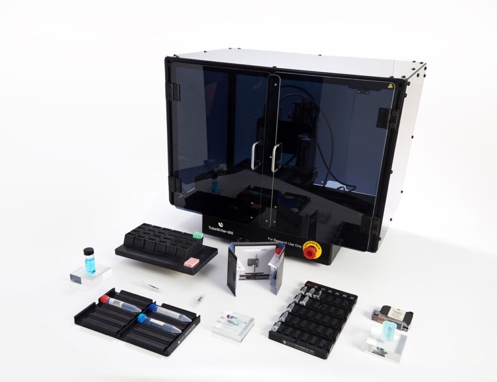 The TubeWriter™ 300 Labeling System is a cost-effective instrument for printing directly on curved surfaces, including tubes, vials, slides,  and plates. It is designed to address the needs of scaling labs at Biotechs and Academia running routine assays and medium throughput experiments.