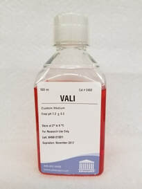 VALI (Vertex modified Air-Liquid Interface) medium is derived from ALI medium. The VALI version was developed to support drug-discovery using human bronchial epithelial cells in an air-liquid surface model